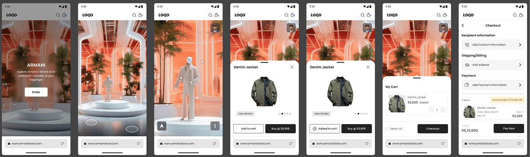 Designed user flows for an 3D e‐commerce solution that spans authentication, onboarding, browsing & exploration, and checkout & post‐purchase. My goal was to create a seamless experience from the moment users land on the site or app, through to final purchase and beyond.