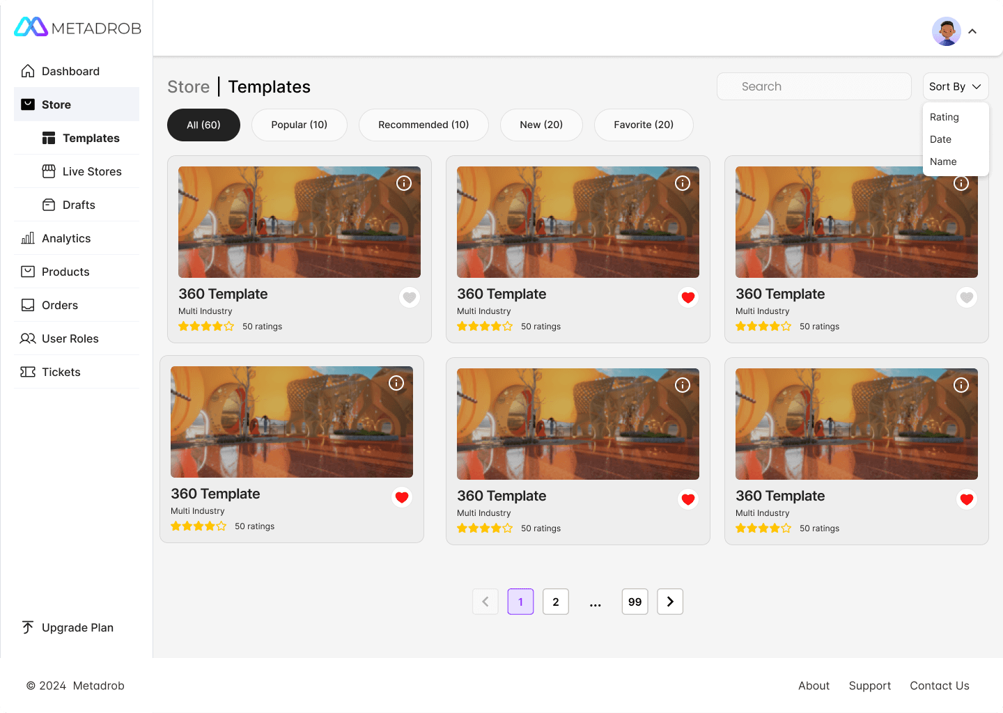 Sort Options: Added a “Sort By” feature to arrange templates by rating, date, or name—improving user control.